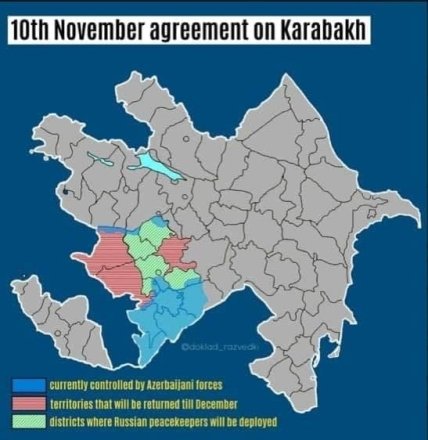 – Азербайджан вернул большую часть Нагорного Карабаха обратно. Включая стратегически важную территорию, выводящую на армянский участок дороги Е002 к Нахичевани. Более того - этот коридор теперь будет для них более открыт и регулироваться российскими миротворцами.