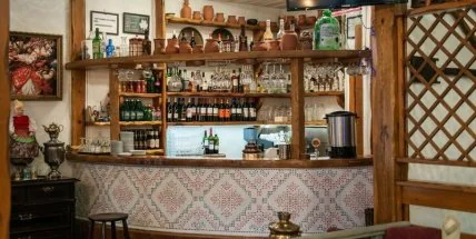 Заведение, в котором была снята фотография называется "Тещин борщ", а до этого называлось "Корчма Тарас Бульба", в которых подавались украинские блюда.