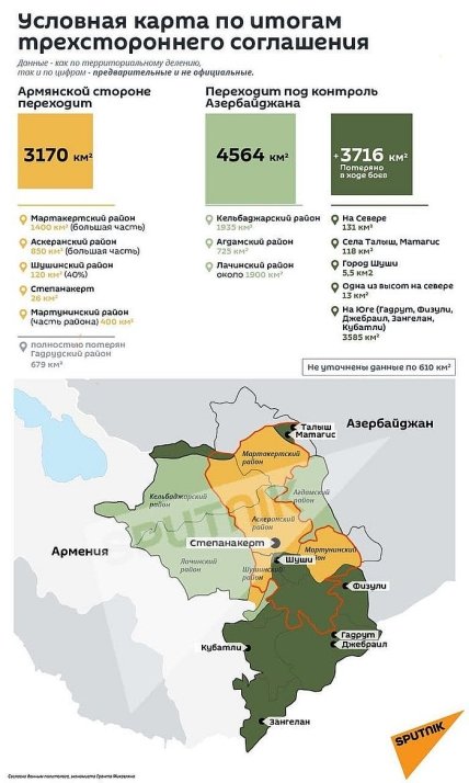 Согласно трехстороннему соглашению армянской стороне переходит 3 170 км2 территории: