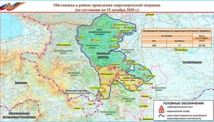 Кроме того, по состоянию на 16 декабря Минобороны РФ обновило карту российского миротворческого контингента в Нагорном Карабахе.