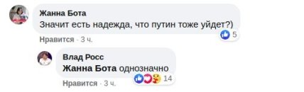 Женщина под ником Жанна Бота спросила о том, есть ли надежда, что Путин тоже как и Кернес уйдет. На что получила ответ от астролога - "однозначно".