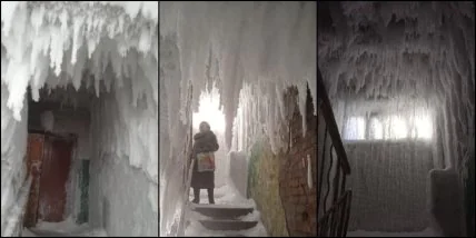 Настоящая ледяная пещера: в России из-за непогоды лед укутал целый подъезд (фото)