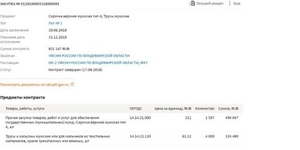 ИК-2 получила контракт от Управления ФСИН по Владимирской области на поставку мужских сорочек, трусов и кальсон. В целом, за поставку продукции, учреждение получит 821 тысячу рублей. Себестоимость одной единицы трусов и кальсон, по данным сайта Госзакупки, 81 рубль за штуку. Стоимость сорочек по 311 рублей, сообщает The Insider.