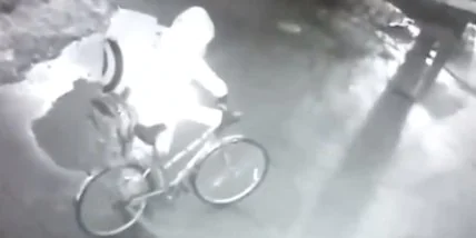 Так, в сети появилась видеозапись с камер внешнего наблюдения, на которой видно, как человек. Одетый в форму курьера "Яндекс.Еда" на велосипеде распыляет в сторону здания неизвестное вещество.
