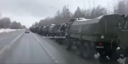 На трассе Вологда-Череповец была замечена российская военная колонна техники, которая якобы двигается в сторону Украины.