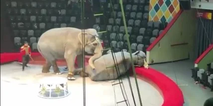 Незабываемое представление: в российском цирке на глазах у зрителей подрались слоны (видео)