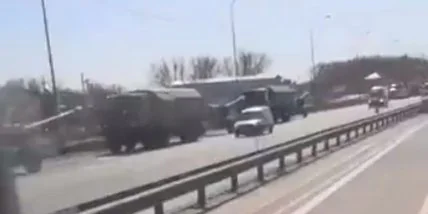 На одном из видео отчетливо видно, что на грузовиках заклеены изолентой или синей пленкой участки номеров, на которых обычно указывается принадлежность техники к военным округам.