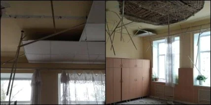 В Краснодарском крае в школе потолок упал на нескольких школьников.