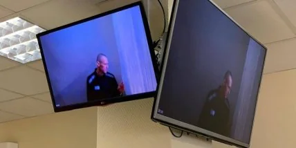 В заметке отмечается, что фотографировать экран, на котором показывали политика, журналистам не разрешили, вместе с тем, пресс-служба Бабушкинского районного суда предоставила вое фото: