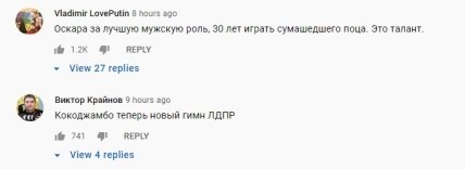 Пользователи YouTube, просмотревшие этот эфир, также отметили выход Жириновского в студию, а некоторые предложили сделать понравившуюся ему песню новым гимном ЛДПР.