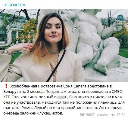 Девушку Протасевича в Беларуси арестовали на два месяца.