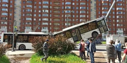 В Питере автобус с пассажирами "взлетел" на столб: видео момента