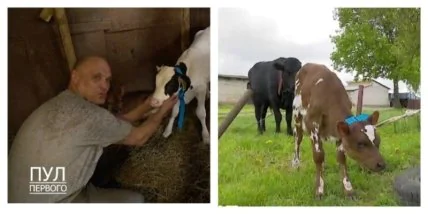 Тема "телочек" не оставляет Александра Лукашенко. Так, учитывая предыдущую договоренность, Лукашенко подарил фермеру, с которым спорил на рынке "Валерьяново" о коровах, бычка со своего подворья, а тот в ответ – Венеру, молодую корову.