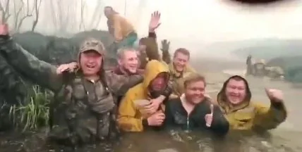 Остались медные трубы: видео с чудом не погибшими в лесном пожаре спасателями восхитило сеть