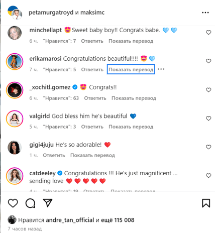 В комментариях подписчики радуются за молодых супругов, поздравляют их с пополнением в семье и любуются малышом.