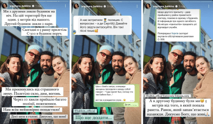 Подробности случившегося Снежана Бабкина рассказала в своих инстаграм-сторис. По словам жены певца, они с друзьями сняли домик на ночь, а на территории был еще один домик в пяти метрах от них. В 5 утра во второй домик прилетела ракета С-300.