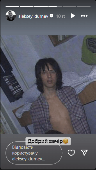 Алексей опубликовал в Instagram-сторис фото со своей юности, на котором его просто не узнать. Здесь он с длинной густой шевелюрой и в клетчатой рубашке, которая оголяет подтянутый торс. К тому же, на архивном фото Дурнев выглядит заметно стройнее и моложе, чем сейчас.