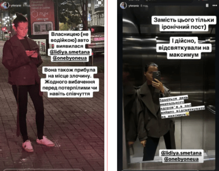 Позже выяснилось, что автомобиль принадлежит блогеру Лидии Сметане, владелице бренда ONE BY ONE, на страницу которого в Instagram подписаны почти 500 тысяч фолловеров. Ранее у них была коллаборация с "Океаном Эльза". Женщина также подъехала на место ДТП, но по словам очевидцев, не извинилась перед пострадавшими.