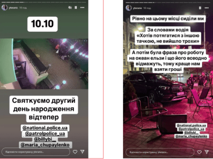 В итоге правоохранители так и не зарегистрировали криминальное производство. Но именно по его факту, полиция должна назначить судебно-медицинскую экспертизу для определения степени тяжести телесных травм и автотехническую экспертизу автомобиля, который влетел в столик с людьми. Также в рамках этого производства должны быть изъяты записи с камер видеонаблюдения на месте ДТП и по маршруту движения автомобиля.