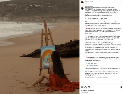 "Телеграфу" также удалось найти страницу Вероники в Instagram. Судя по соцсетям девушки, она действительно является наставницей по арт-терапии и активно ведет свой блог.