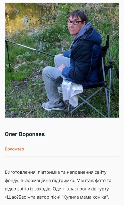 А вот один из основателей группы "Шао? Бао!" Олег Воропаев занимается волонтерством. Он наполняет сайт благотворительного фонда "Здоровое детство без границ". Там же можно увидеть его профиль.