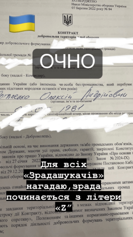 " Я сказал отцу: "Хочу ехать на фронт, на передовую". А он говорит: "В терроборону запишись для начала". Я говорю: "Запиши меня в терроборону". Так я записался в терроборону заочно и решил, что буду дальше делать то, что умею. Доносить информацию об Украине", — сообщил исполнитель.