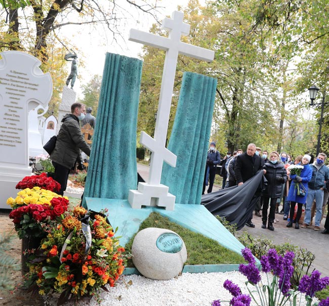 В 2020 года на могиле режиссера был открыт памятник. Монумент представляет собой две створки театрального занавеса с крестом в центре, выполненные из природного камня и бронзы.