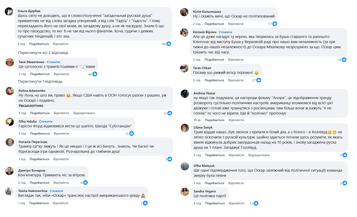 Вот что пишут украинцы в комментариях под постами о победе "Аноры" на "Оскаре":