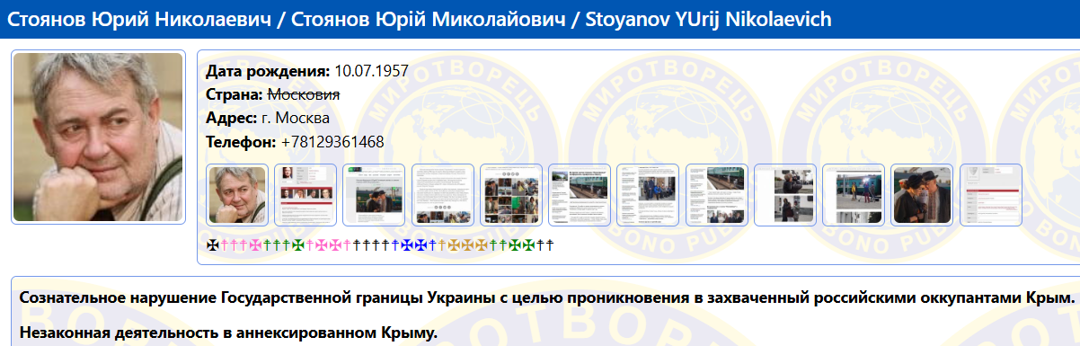 Актер был внесен в базу данных "Миротворец" в 2018 году неслучайно. Причиной стало незаконное пересечение границы с оккупированным Крымом через территорию РФ. За год до этого он участвовал в съемках фильма "Неуловимые", проходивших в Севастополе. В том же году он также снялся в ленте "Крымский мост. Сделано с любовью!", которая продвигала аннексию украинского полуострова.