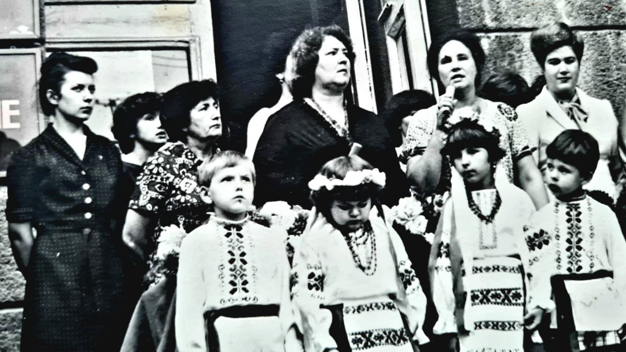 На архивных кадрах Евгению Стоянову видно в окружении детей в украинских вышиванках.