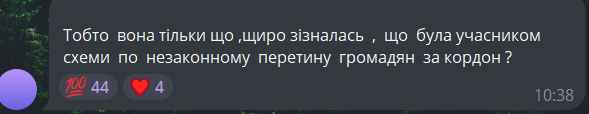 - "То есть она только что искренне призналась, что была участником схемы по незаконному пересечению граждан за границу?"