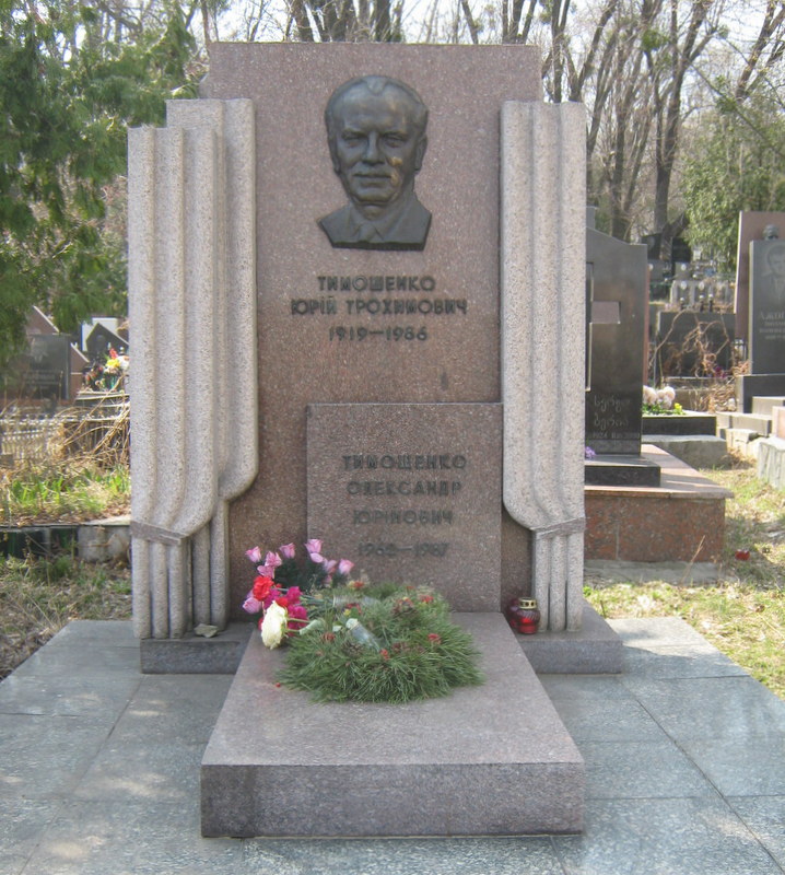 Юрий Тимошенко скончался 1 декабря 1986 года в Ужгороде от сердечного приступа, который случился после гастрольного выступления. Он был похоронен на Байковом кладбище в Киеве (участок 52) вместе с сыном, который умер годом позже.