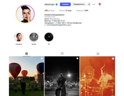 На территории Украины ее страница в Instagram недоступна. Кстати, в "шапке" ее профиля написана "Елизавета Вальдемаровна", но не указана настоящая ее фамилия. Возможно, потому что она украинская.