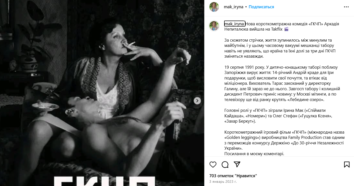 Несколько месяцев назад, в марте, Ирина выложила архивное фото, видимо, со съемок "Поймать Кайдаша".