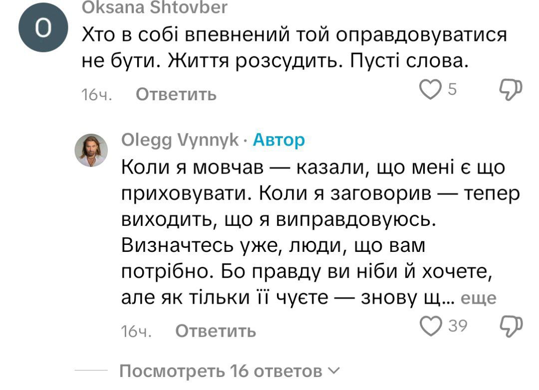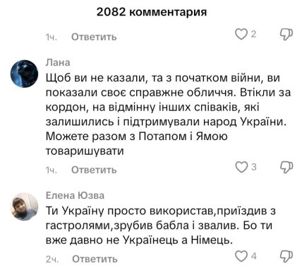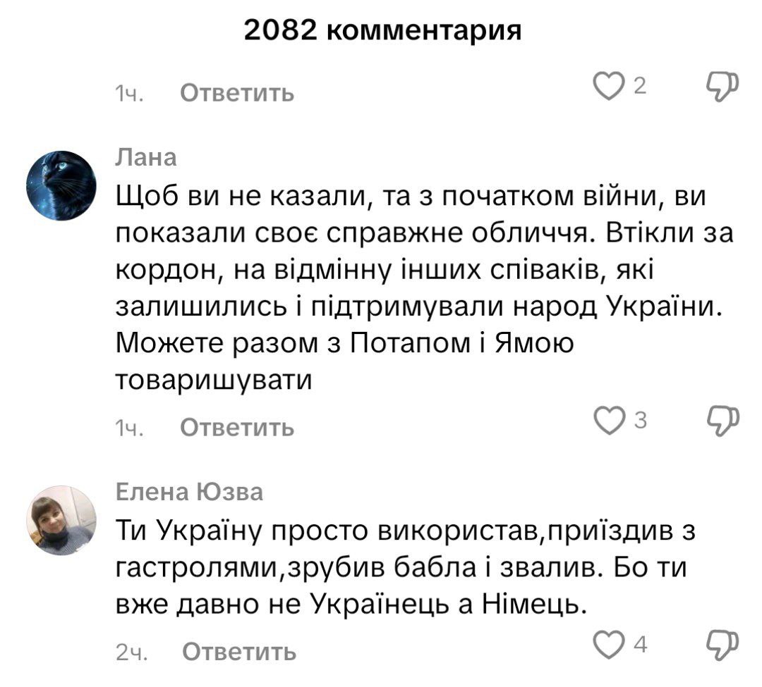 Украинцы на оправдания Винника отреагировали по-разному. Нашлись те, кто до сих пор поддерживает артиста и желает видеть его с концертами в нашей стране. Но многие комментаторы жестко "прошлись" по Виннику, назвали его "гастролером" и "трусом", ведь он сбежал за границу в числе первых и теперь ему советуют дружить с Потапом и Владом Ямой.