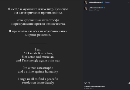Актер Александр Кузнецов вырос в украинском Севастополе, но родился в одесском городке Белгород-Дневстровский. 22 июля ему исполняется 33 года. После полномасштабного вторжения он, как и его однофамилица Екатерина Кузнецова, осудил войну и в 2022 году покинул Россию, где строил актерскую карьеру.