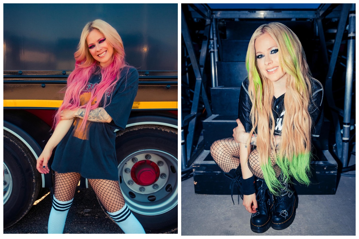 Аврил Лавин выглядит роскошно. Судя по фотографиям, в 2024 году на сцене она появлялась с фирменными розовыми волосами, а в рамках турне 2025 года немного изменила прическу, перекрасив пряди в ярко-салатовый цвет.