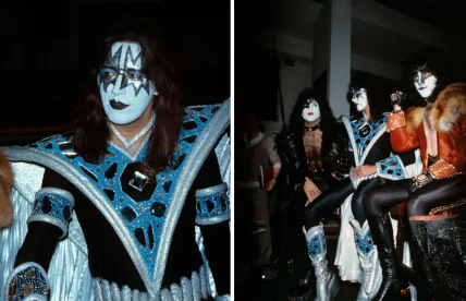 - Эйс Фрейли был известен своим сценическим образом "Космического Воина" с эффектным гримом и "дымящейся" гитарой