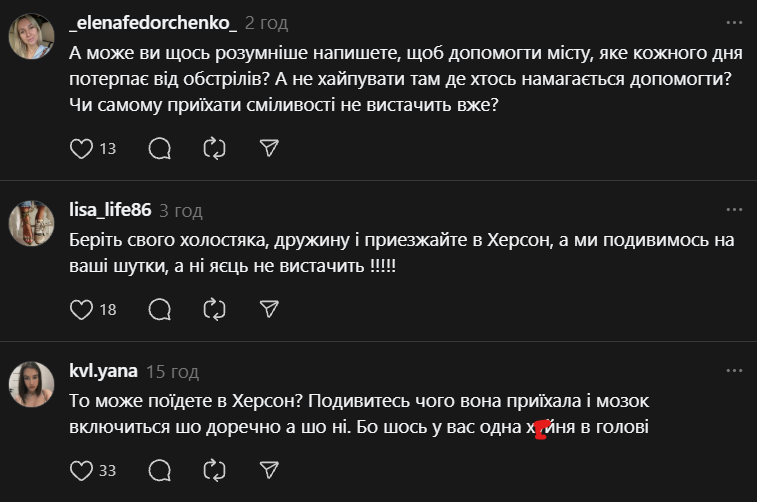 А может, вы что-то умнее напишете, чтобы помочь городу, который каждый день страдает от обстрелов? А не хайповать там, где кто-то пытается помочь? Или самому приехать смелости не хватит уже?
