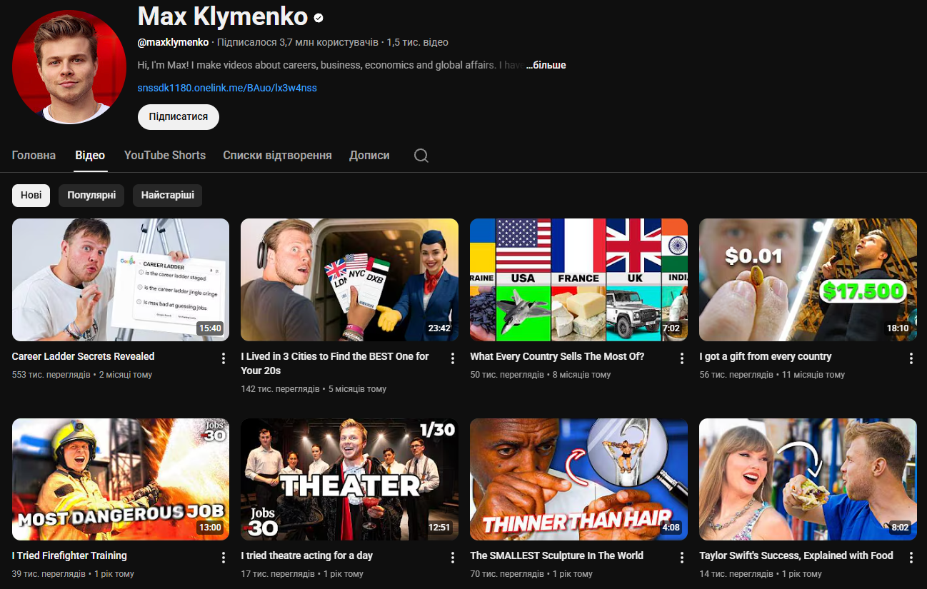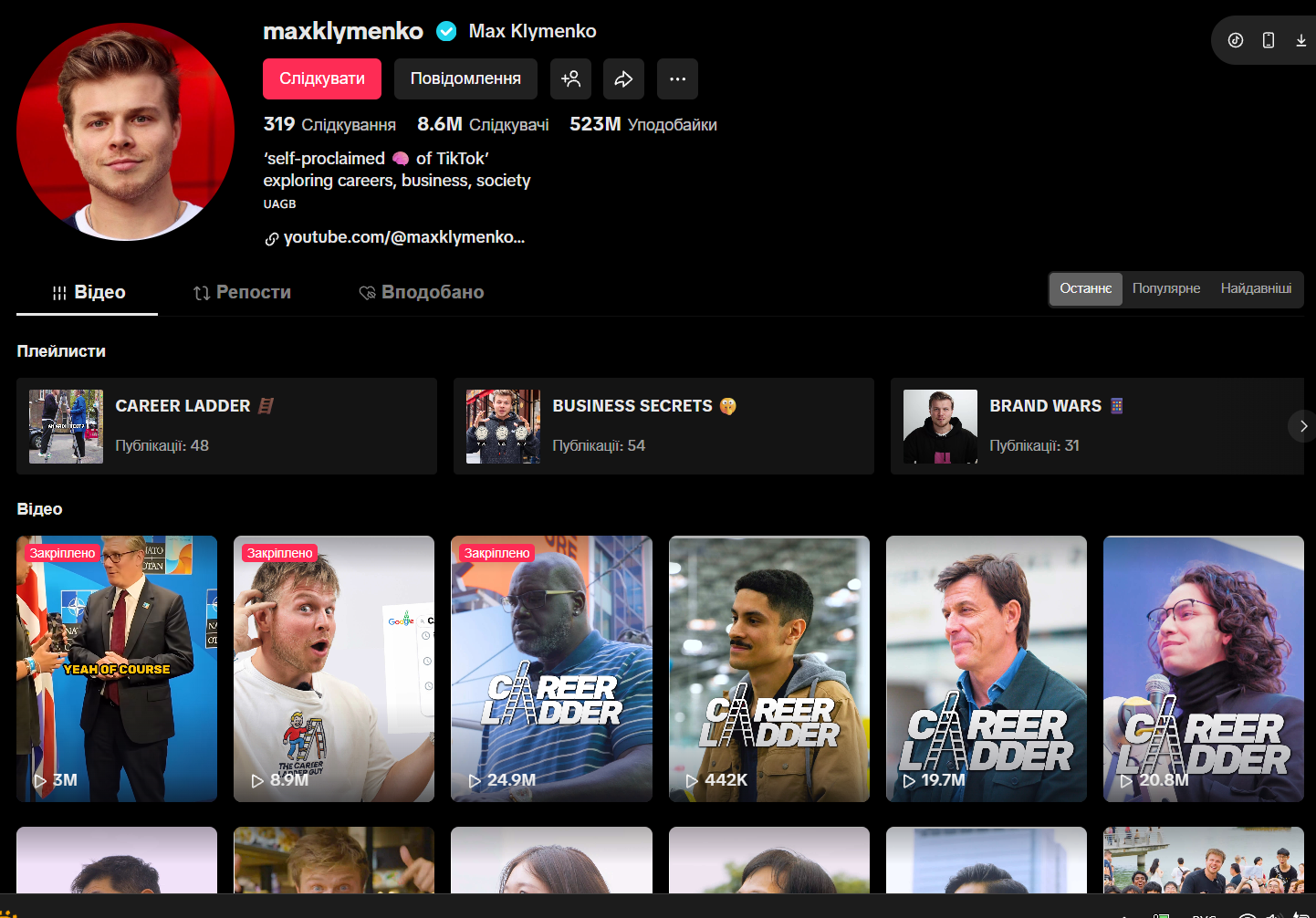 Еще в 2018 году Клименко запустил собственный YouTube-канал, где сначала делился видео о книгах и искусственном интеллекте. Позднее он создал и образовательный канал в TikTok. Благодаря своим видео к ноябрю 2025 года (на момент публикации этого материала) его аудитория выросла до более чем 8,6 млн подписчиков в TikTok и 3,7 млн — на YouTube.