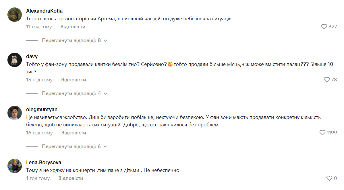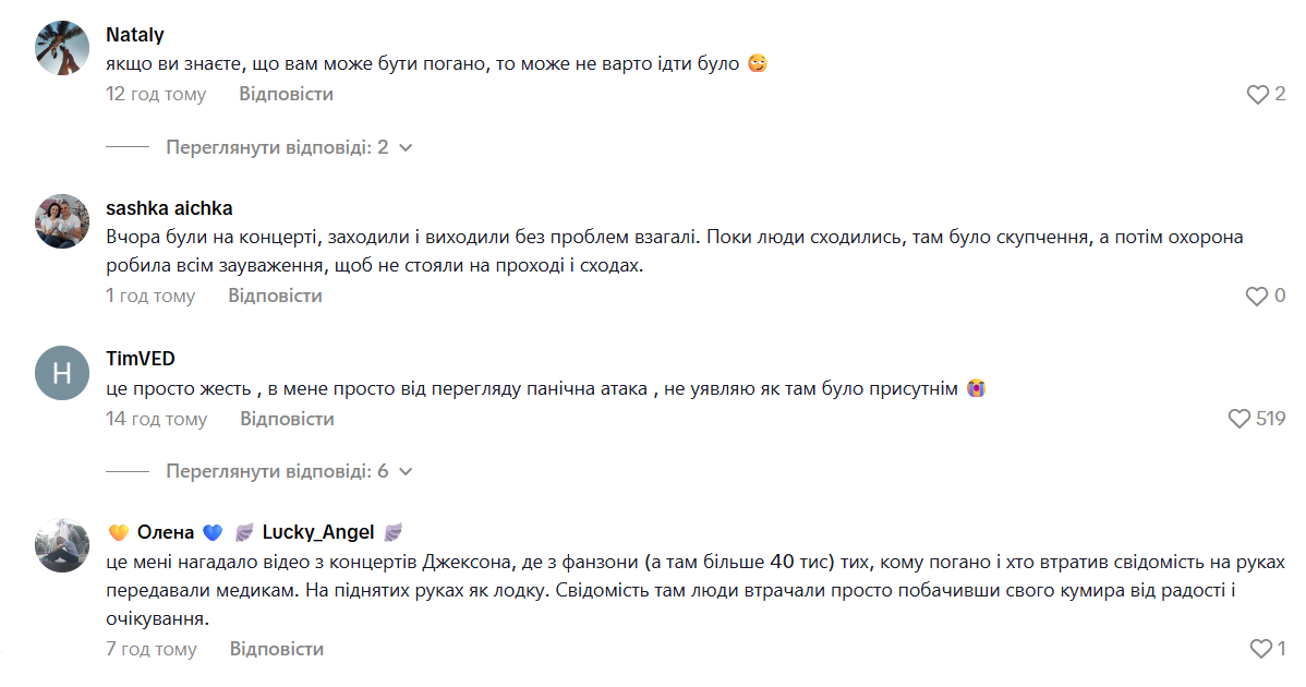 В комментариях к видео украинцы начали бурно обсуждать последний концерт Пивоварова, на котором случился такой инцидент. Однако зрители разделились на два лагеря — одни также возмущены игнорированием правил безопасности, а другие наоборот говорят, что на предыдущих концертах все было хорошо. К тому же, хейтеры посоветовали девушке не ходить на такие концерты, если она знает, что ей может стать плохо.