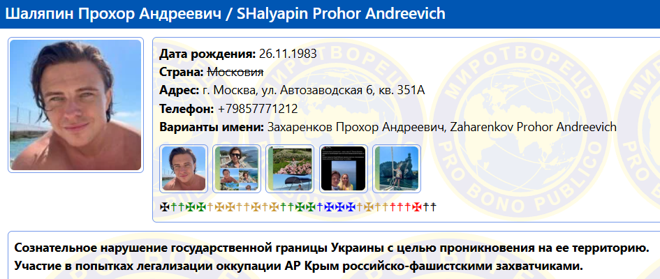 - Сам Прохор Шаляпин поддерживает российскую агрессию в Украине