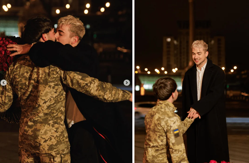 В воскресенье, 23 ноября, Melovin опубликовал в соцсетях романтические фото, на которых его возлюбленный Петр Злотя делает ему предложение. На снимках можно увидеть большой букет алых роз, обручальное кольцо — без камня, но с гравировкой, и счастливых возлюбленных.
