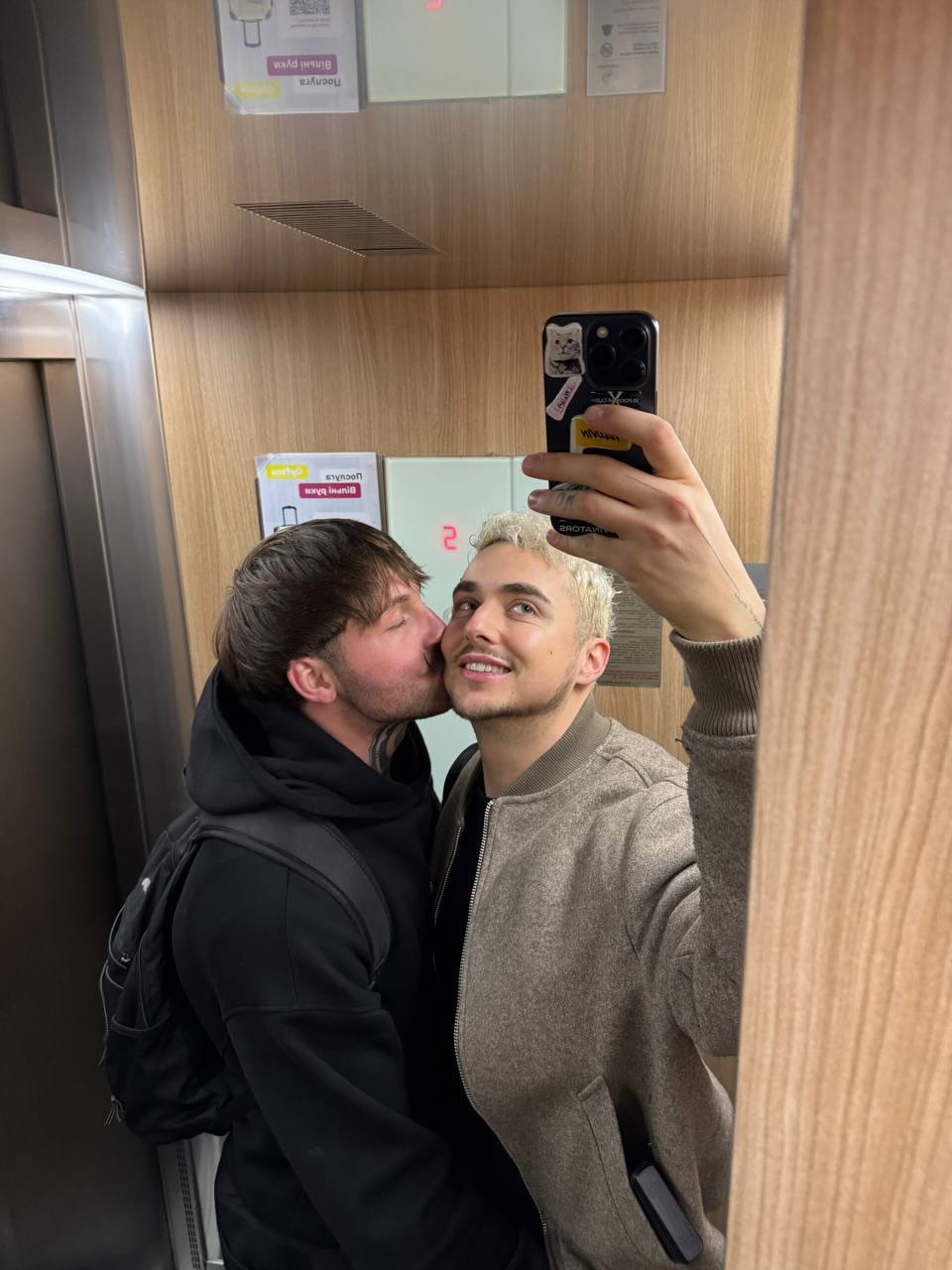 28-летний артист не перестает радовать своих поклонников в сети романтическими фото с любимым. В этот раз Меловин опубликовал в соцсети Инстаграм редкие снимки с Петром в лифте. На них пара обнимается и целуется.