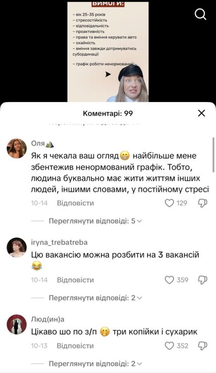 После публикации видео пользователи в комментариях писали, что перечень обязанностей больше напоминает комбинацию, по меньшей мере, трех различных специальностей: контент-мейкера, менеджера и персонального помощника.