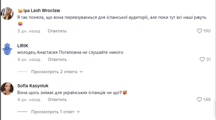 - "Я так поняла, что она переобувается для испанской аудитории, но пока здесь все наши ржут"