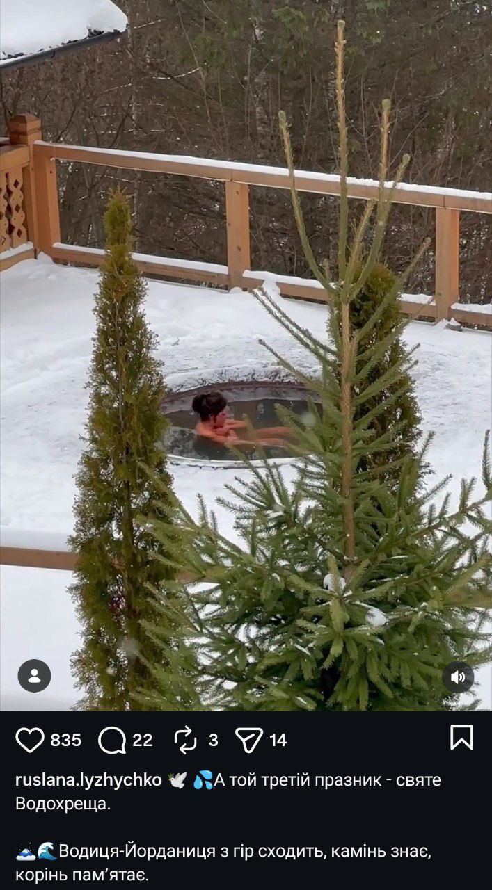 Певица Руслана также праздновала праздник Крещения. На ее странице есть видео, в котором она плавает в уличном чане во дворе какого-то комплекса.