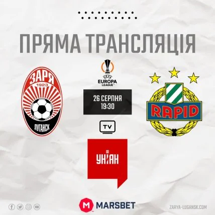 В прямом эфире в Украине матч "Заря" — "Рапид" будет показан на телеканале "Униан ТВ", а также на ОТТ-платформах, у которых вышеназванный канал есть в доступе (oll.tv, megogo и другие). Кроме того, на сайте "Телеграф" будет доступна онлайн видеотрансляция поединка, а по окончании встречи — видео лучших моментов игры.