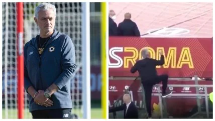 Португальский тренер "Ромы" Жозе Моуринью, который недавно вместе с командой потерпел унизительное поражение в Лиге конференций от норвежского "Буде-Глимта" (6:1), был удален в матче чемпионата Италии против "Наполи" (0:0). Несмотря на красную карточку, "Особенный" продолжал руководить своей командой.