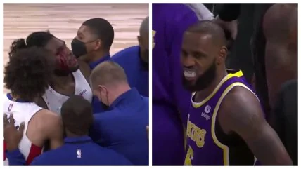 Леброн пустил кровь во время матча НБА, звезду лиги пришлось спасать (видео)